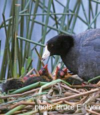 I began field research on American coots (Fulica americana) in 2005 as a graduate student working with Dr. Bruce Lyon at UC Santa Cruz. Bruce has studied these birds since he was a graduate student, and together we have learned a lot about the ecology and evolution of family life using this study system. The research I have been involved in primarily involve data collected in field studies that took place in British Columbia in 2005-2008.