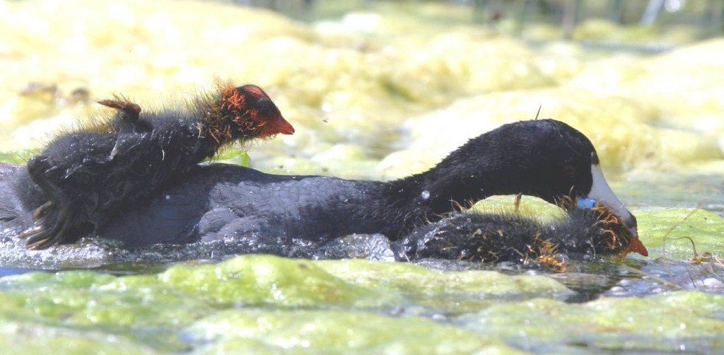 American coots (Fulica americana) have a decidedly active — and aggressive — strategy of parental intervention. My research shows that coots use a mixed strategy for controlling brood size: they use both brood reduction and parental control, but at different points in the parental care stage. After an initial period of high mortality for late-hatching chicks (brood reduction), Parental behaviors such as parental aggression, brood division and favoritism act as mechanisms for parental control that allow adults to optimally invest in their offspring (Shizuka & Lyon 2013). In the process, parents create a “favoritism hierarchy”, that is distinct from the competitive hierarchy created by hatching asynchrony. Changes in parental care strategies across time might be common, but it requires intensive observations throughout the parental care period (both in the nest & outside the nest), which is tractable in subprecocial birds like coots, but may be more difficult in altricial birds.